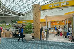 We found the US Airways desk conveniently located just outside of an Au Bon Pain.